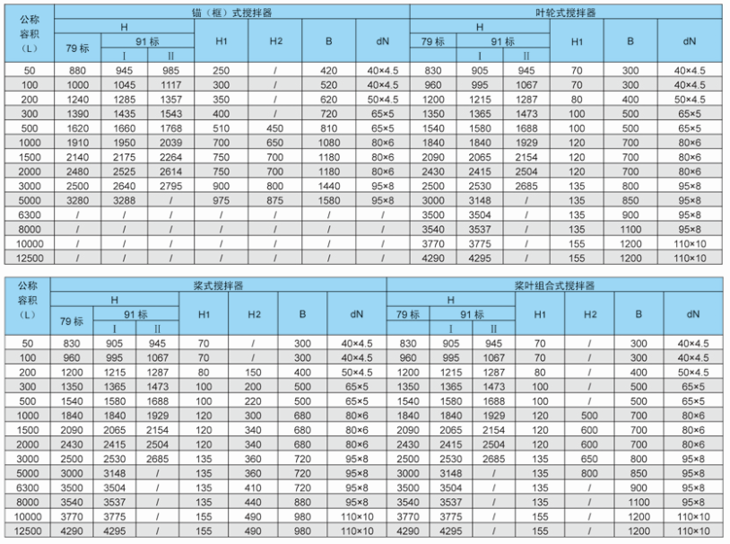 一、搪瓷攪拌器的標(biāo)準(zhǔn)尺寸要求
